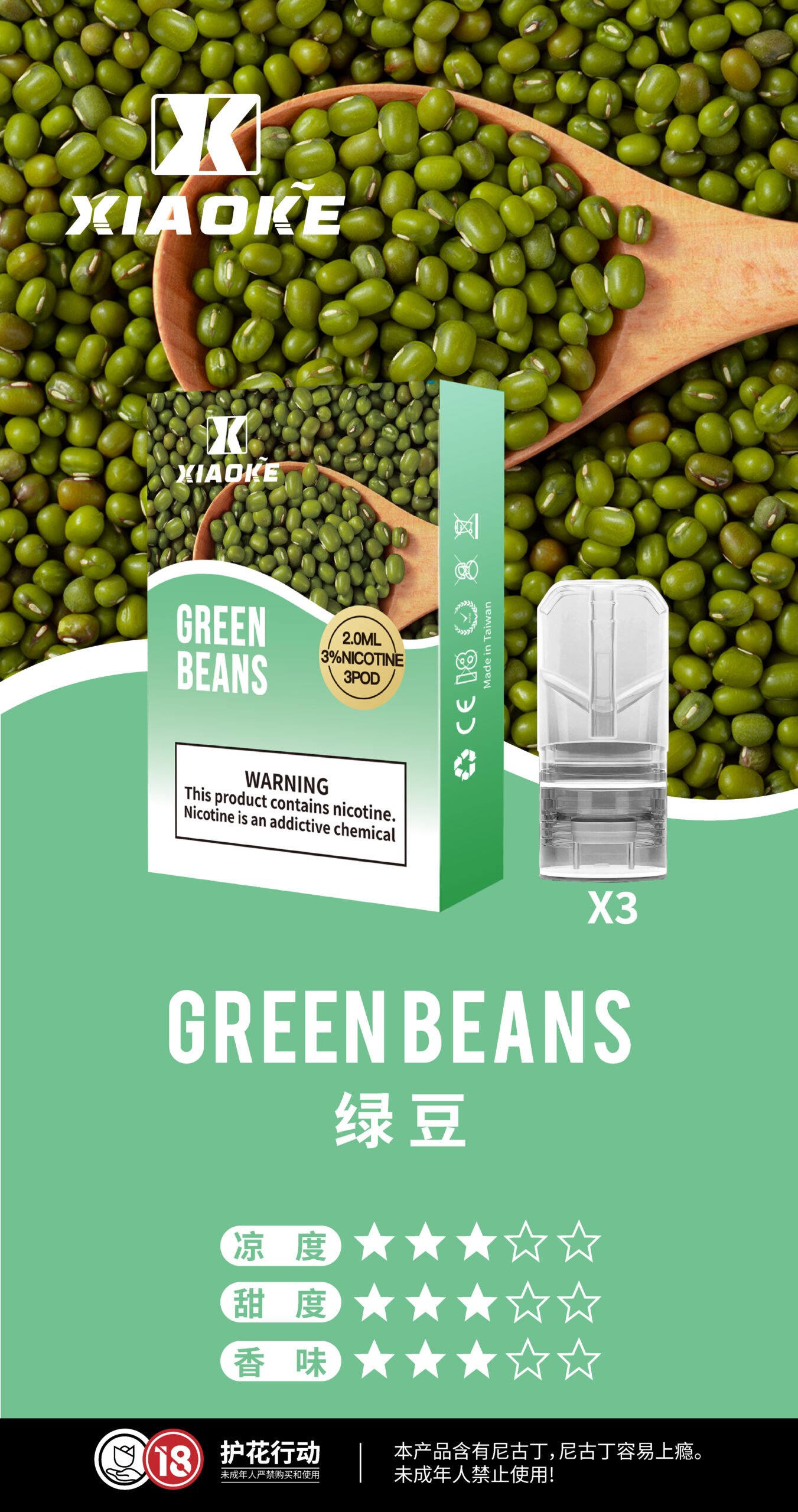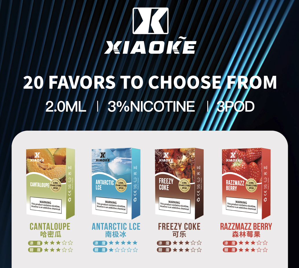 XIAOKE梟客一代煙彈 擁有多達 20 種口味選擇,包括水果、薄荷、甜點等系列,能滿足不同用戶的口感需求。每支煙彈容量為 2.0mL,含 3%(30mg)尼古丁濃度,採用優質原料製作,為用戶提供順滑的吸入體驗與穩定的口感表現。